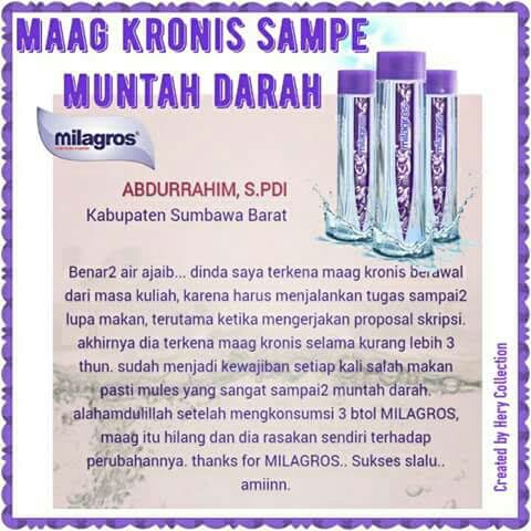 Di bawah ini adalah beberapa testimoni dari orang² yg sudah di sembuhkan Alloh SWT dari sakit maag dengan perantara milagros