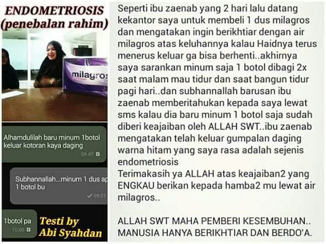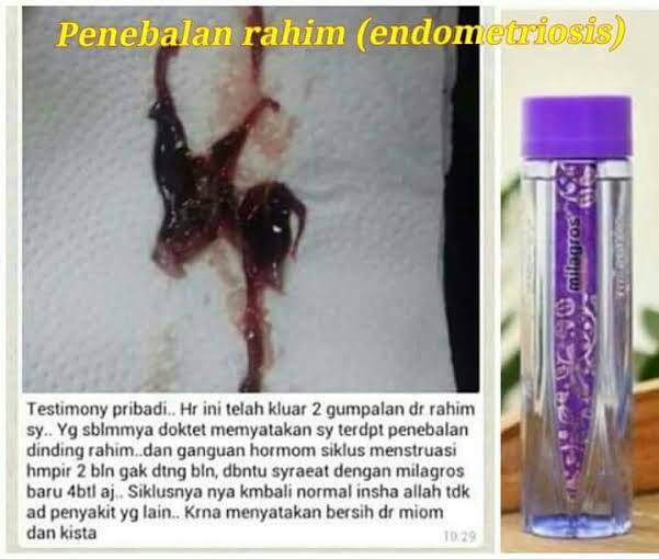 Di bawah ini adalah beberapa testimoni dari orang² yg disembihkan Alloh SWT dari keluhan penebalan dinding rahim dengan perantara terapi milagros