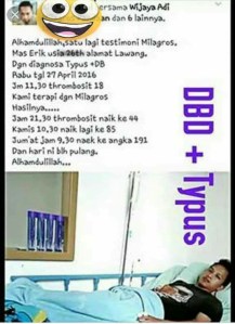 Di bawah ini adalah beberapa testimoni dari orang² yg sudah disembuhkan Alloh SWT dari Tipes dengan ikhtiar milagros